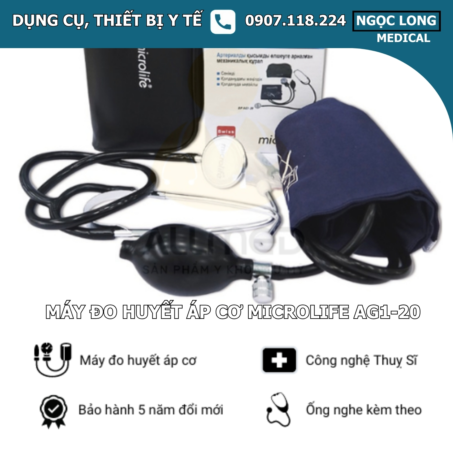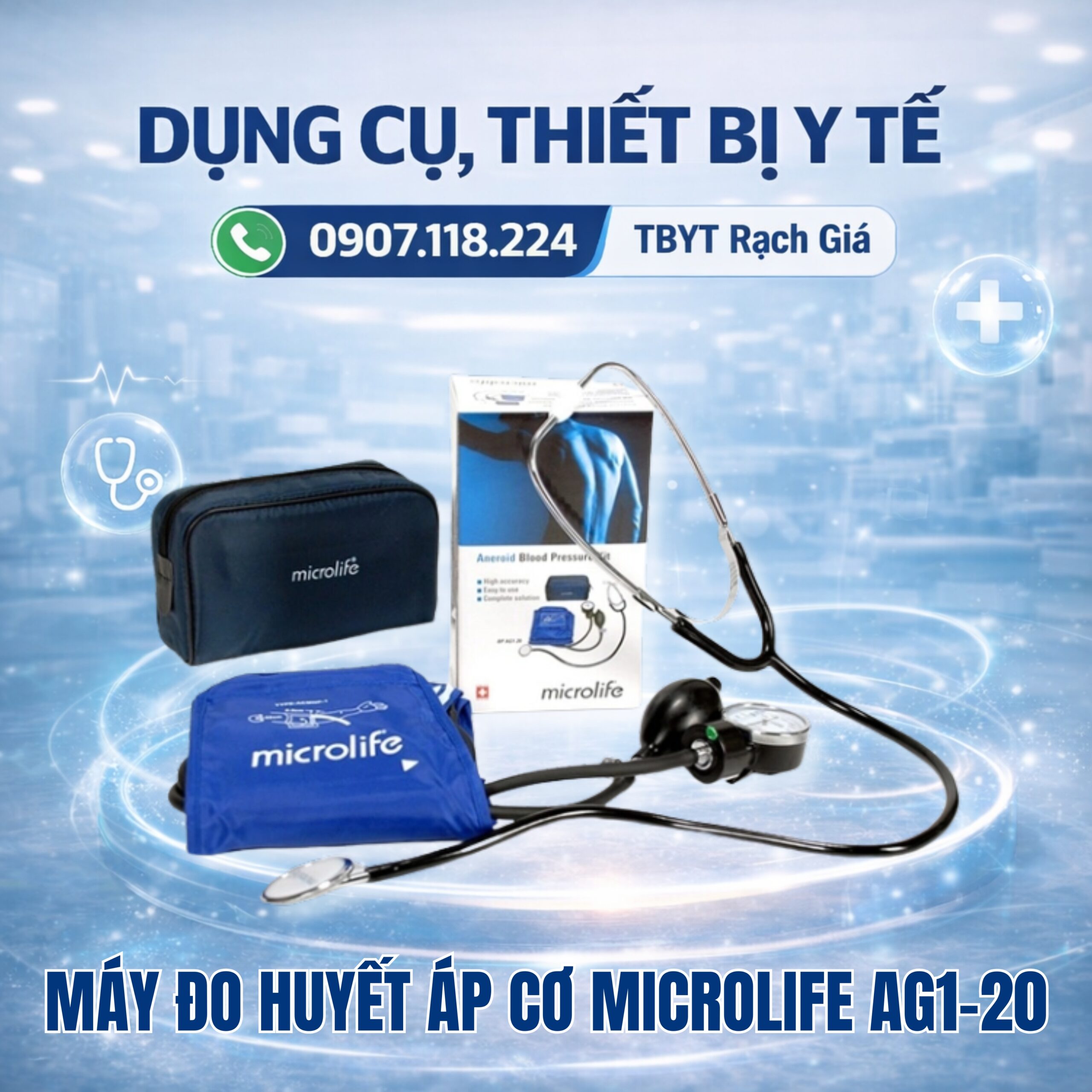 Máy đo huyết áp cơ Microlife AG1-20 kèm ống nghe là thiết bị đo huyết áp bằng cơ học chính xác cao, thiết kế bền bỉ, dễ sử dụng và phù hợp cho phòng khám, bệnh viện hoặc theo dõi sức khỏe tại nhà.