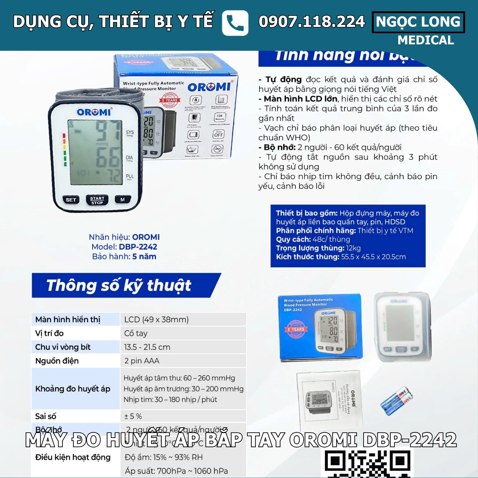 Tên sản phẩm: Máy đo huyết áp cổ tay Oromi DBP-2242